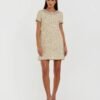 This Beige Floral Beaded Scoop Neck Midi Dress features a striking floral design, adorned with shimmering beads and delicate embellishments, offering a bold, contemporary look perfect for weddings and cocktail parties.