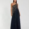 Beige One Shoulder Floral Embellished Trapeze Gown