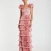 A romantic pleated charmeuse gown featuring soft puff sleeves, a keyhole neckline, and a thigh-high slit for effortless modern elegance – Mac Duggal