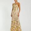 This crepe gown features a high neckline, a flattering a-line silhouette, and embellished sleeves. – Mac Duggal