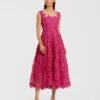 An embroidered midi dress featuring a high neckline, sleeveless silhouette, fitted bodice, and an embellished waistband – Mac Duggal