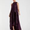 Make a statement in this pink pleated charmeuse gown. Featuring a v neckline, ruffled straps, and an eye-catching tiered ruffle skirt, it’s the perfect dress for any special occasion. – Mac Duggal