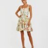 - Floral-printed charmeuse fabric (100% polyester)