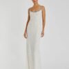 White Ruffle Shoulder V-Neck Chiffon Gown
